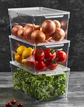 صناديق شفافة قابلة للتكديس لتخزين الطعام من أجل تنظيم المؤن البلاستيكية للمطبخ للفواكه