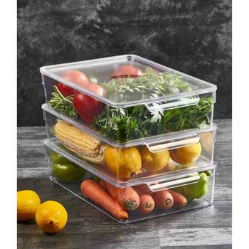 طقم منظم ثلاجة من البلاستيك الأكريليكي الشفاف بأغطية-6 لتر ، 4.75 لتر ، 3.25 لتر-متين لثلاجة المطبخ
